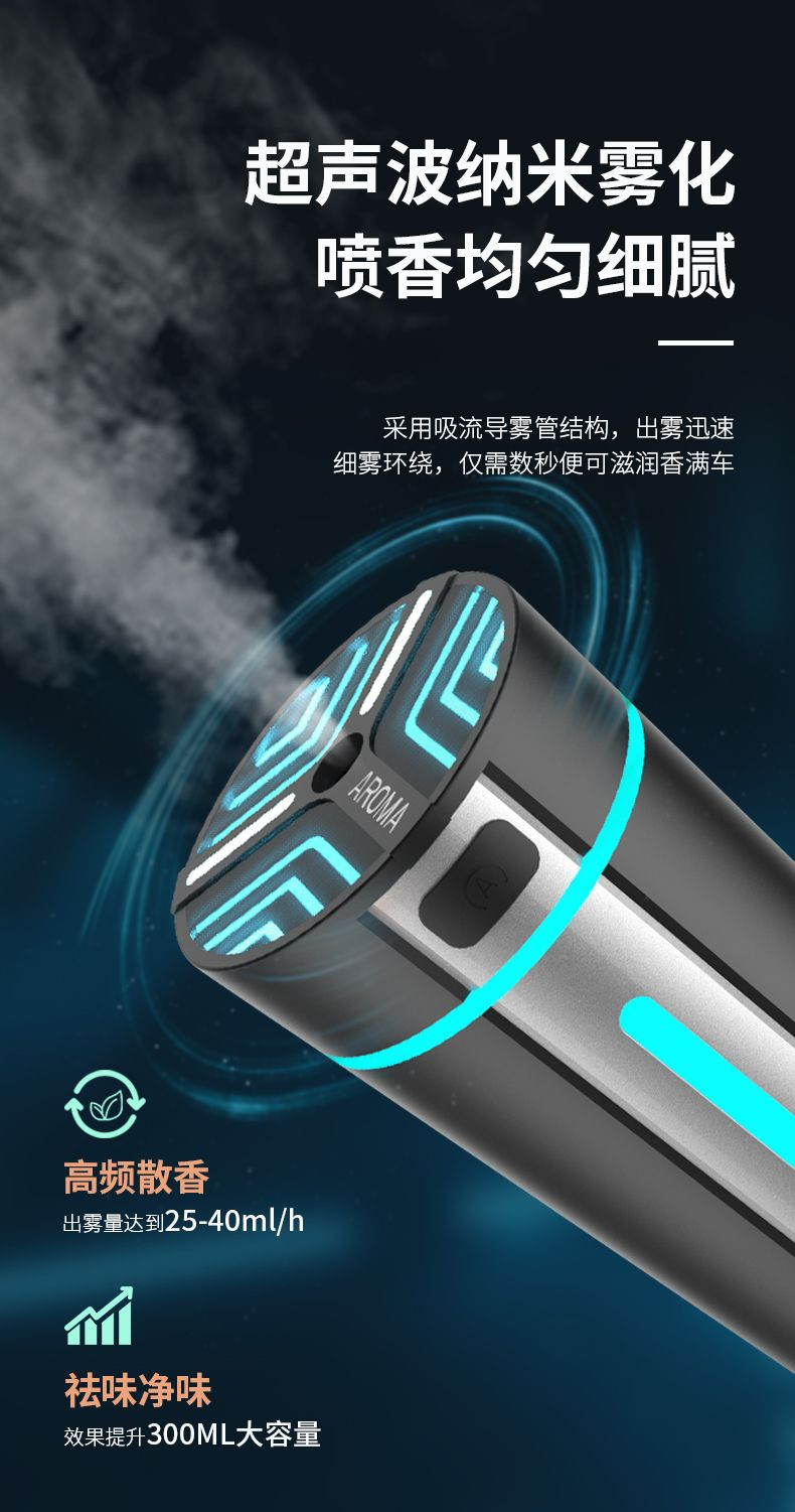 High-frequency fragrance diffusion, with a mist output of 25-40ml per hour.