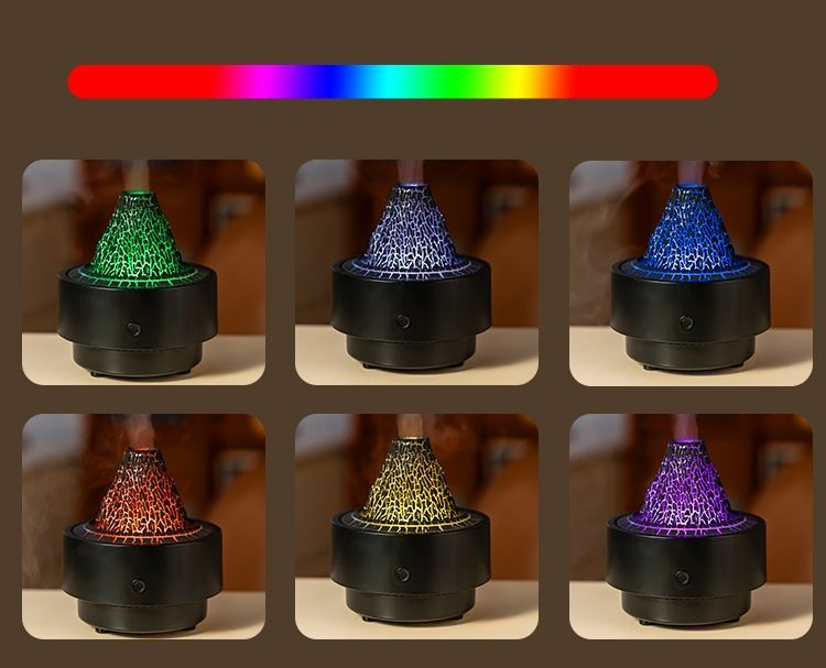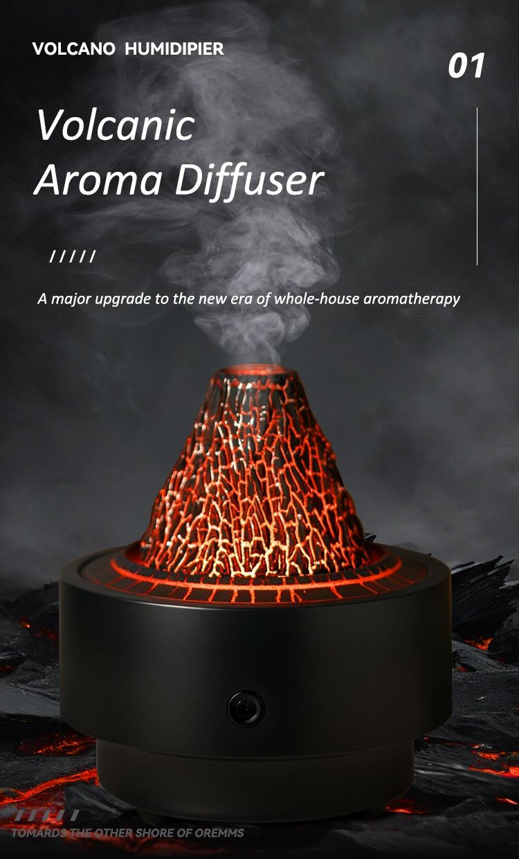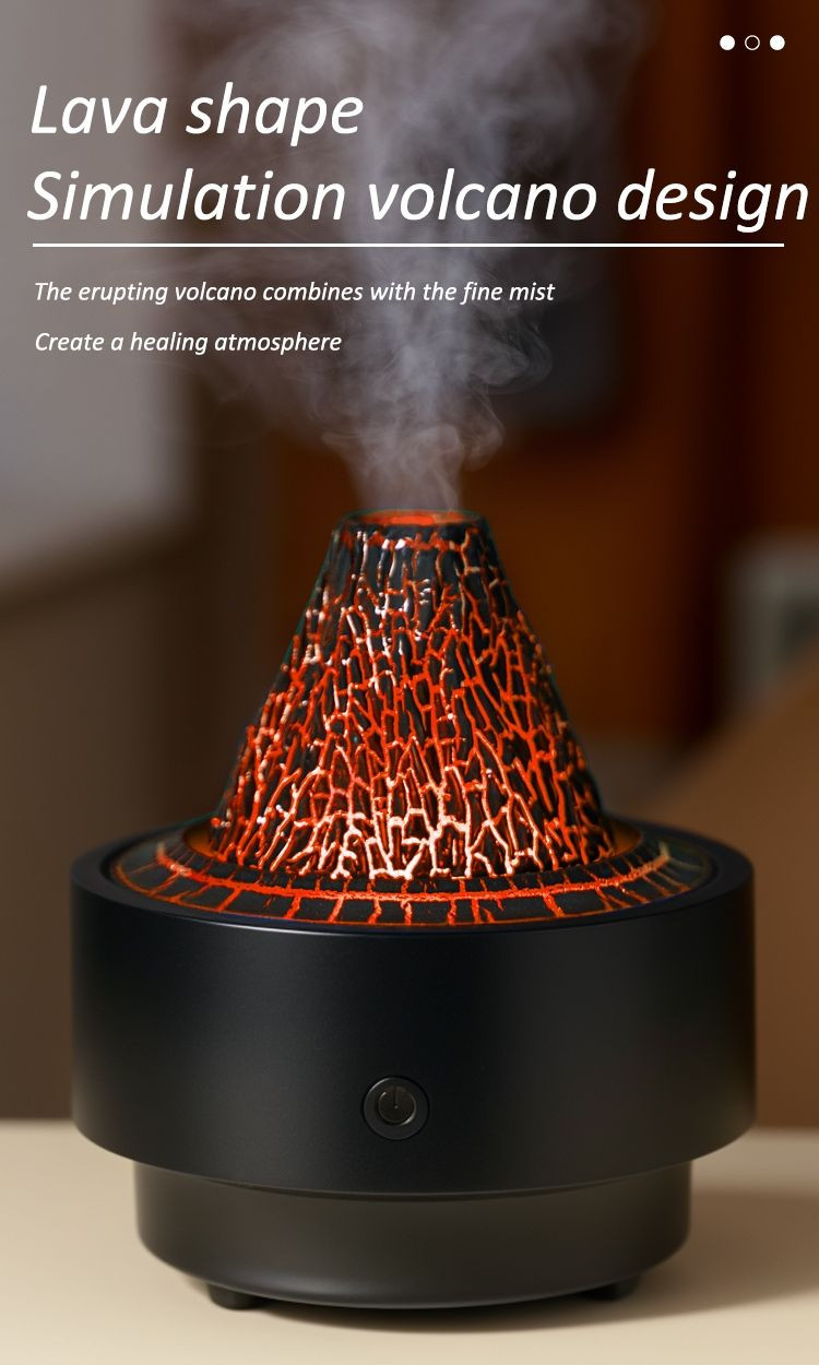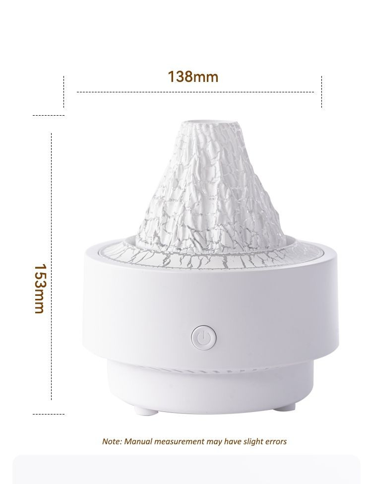 Simulated volcano design creates a volcanic eruption atmosphere. Nano mist technology enables rapid diffusion. Built-in water level monitoring component automatically shuts down when there is no water. Seven-color ambient lighting with free adjustment.